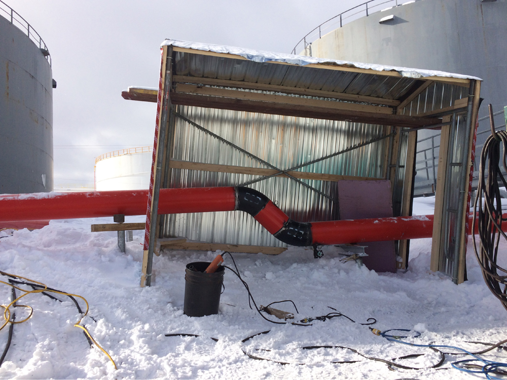 This project involved producing and installing new fire lines (10″ on main lines and 4″ on vertical lines) for tanks 7 and 8. It also consisted of installing foam boxes, piping and supports for the TK-08 tank.