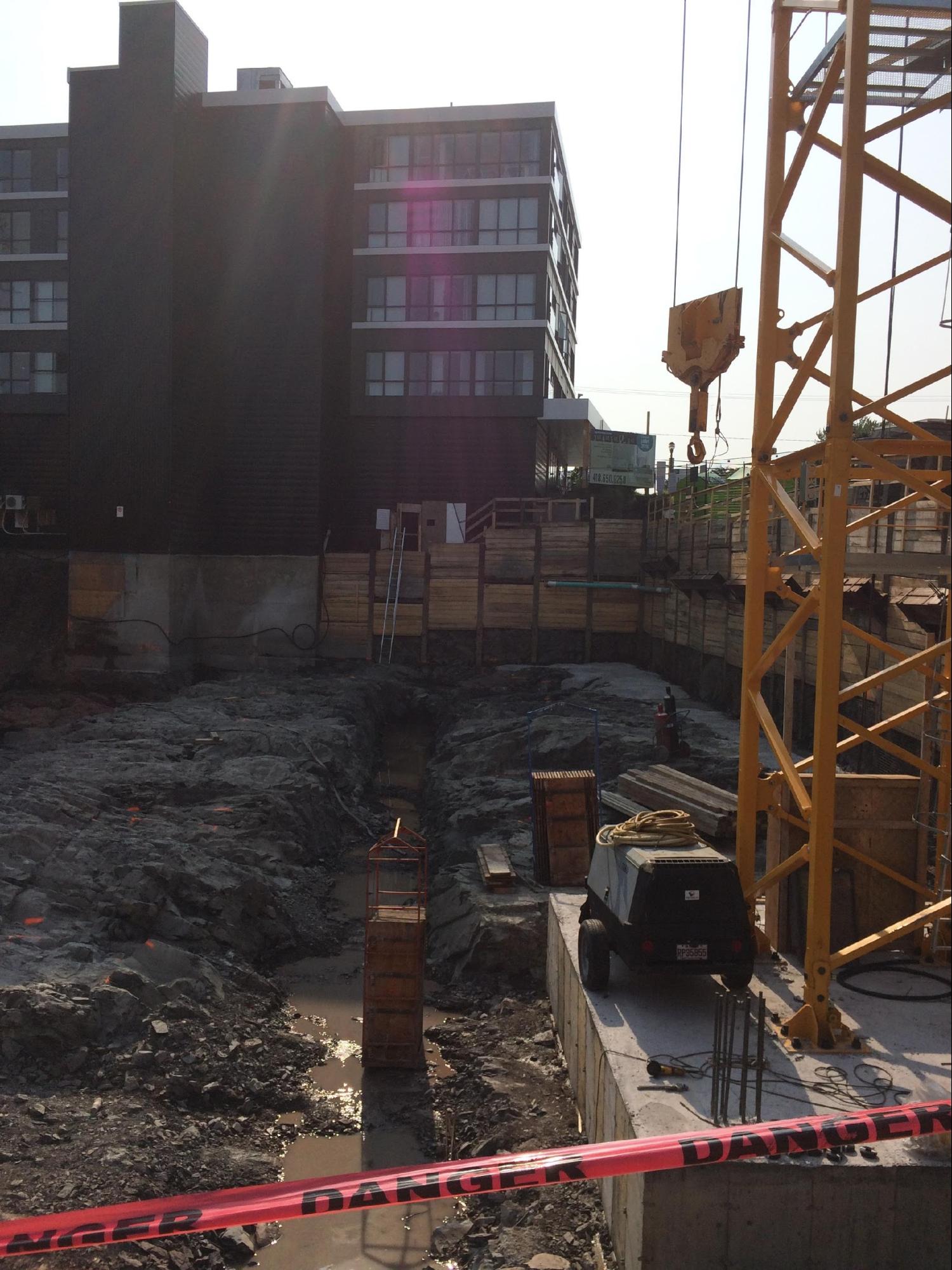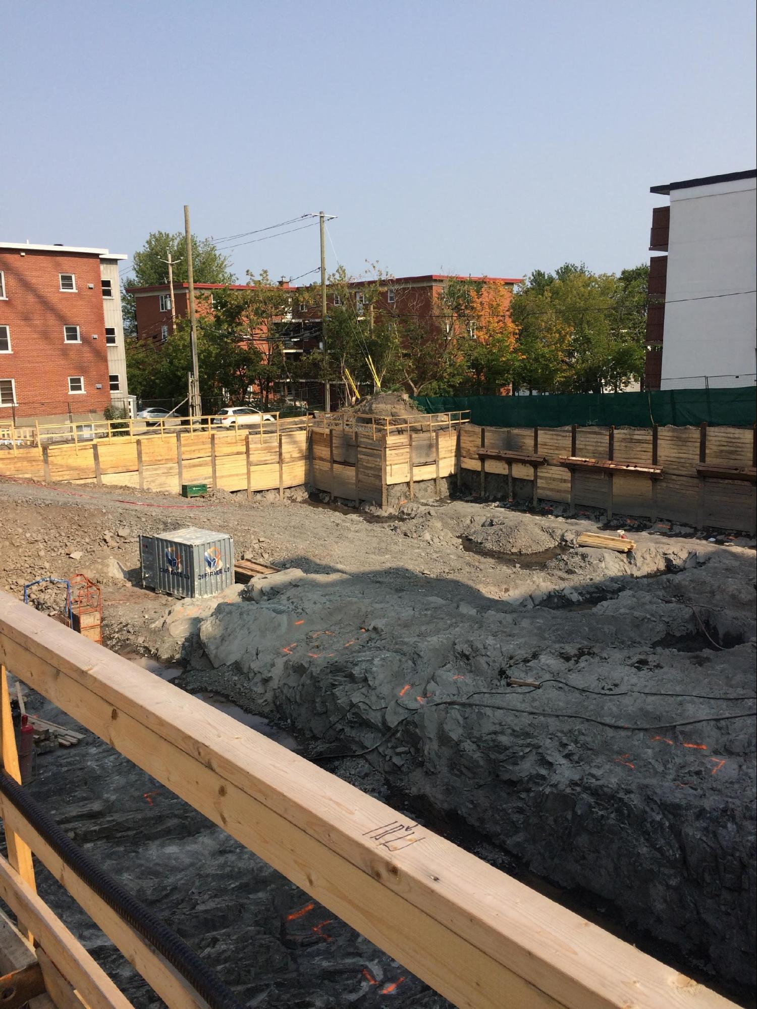 - The project consisted of building a temporary soldier pile wall around the entire perimeter of the lot at an average depth of 5 metres to support the expansion of a building with two levels of underground parking.
