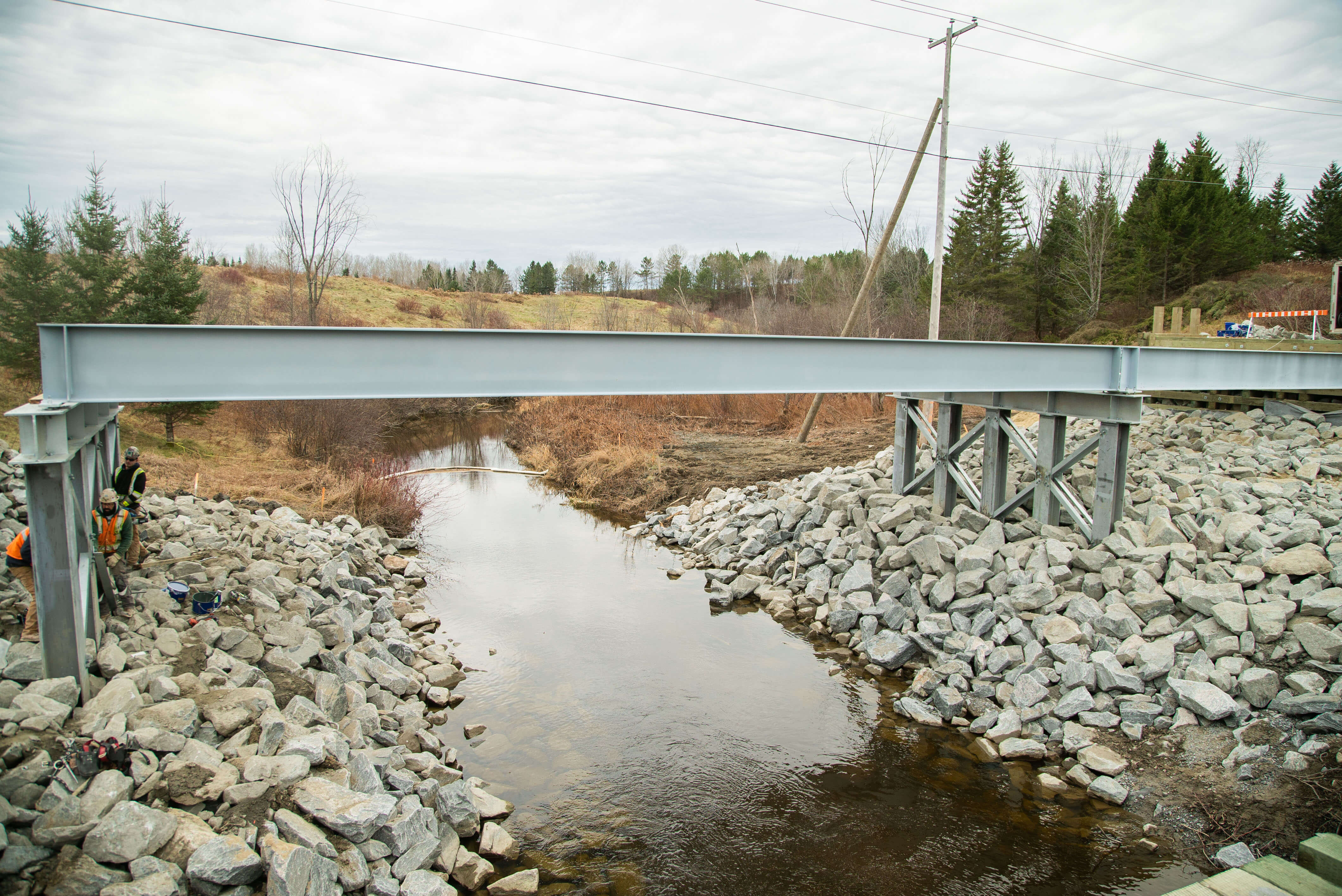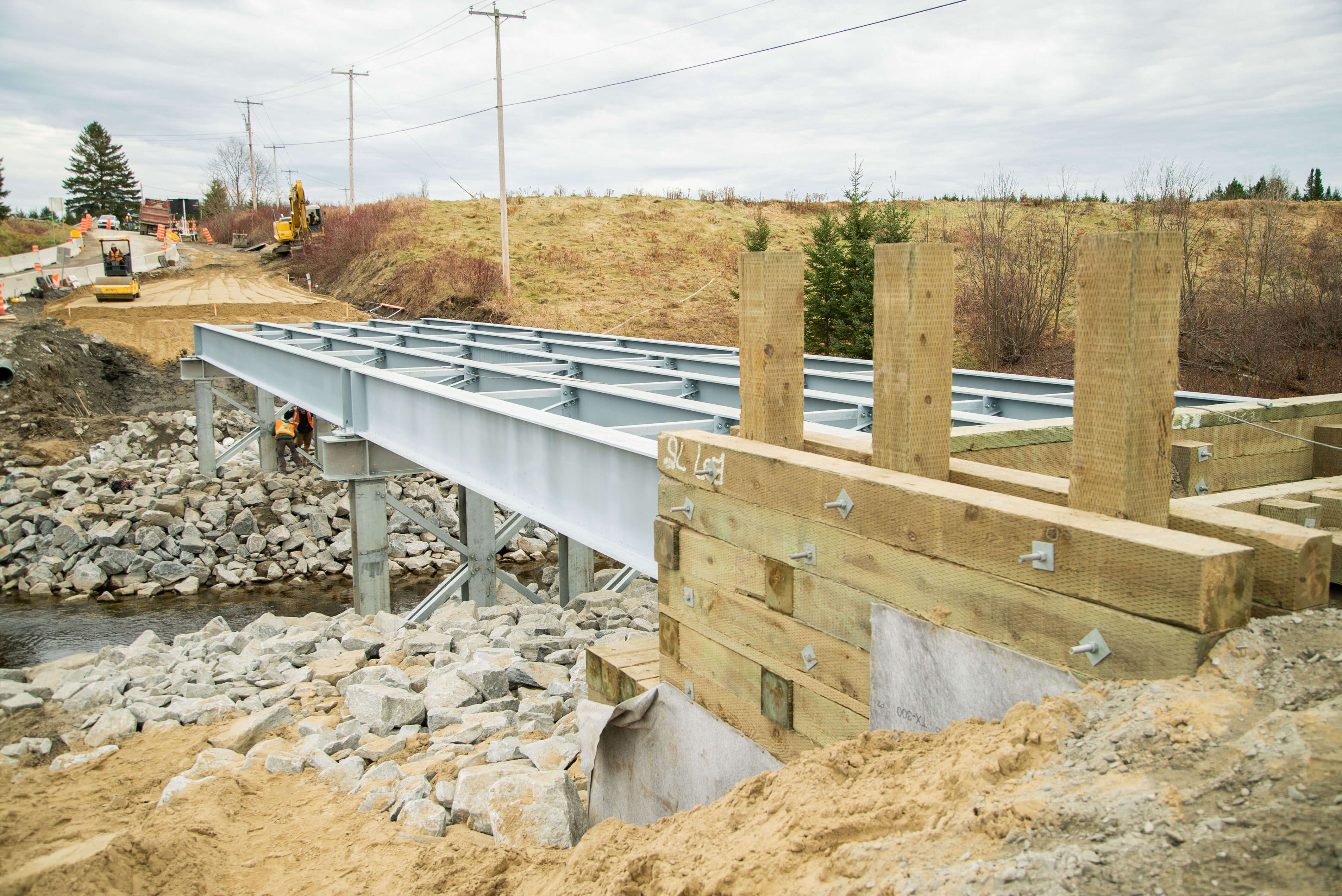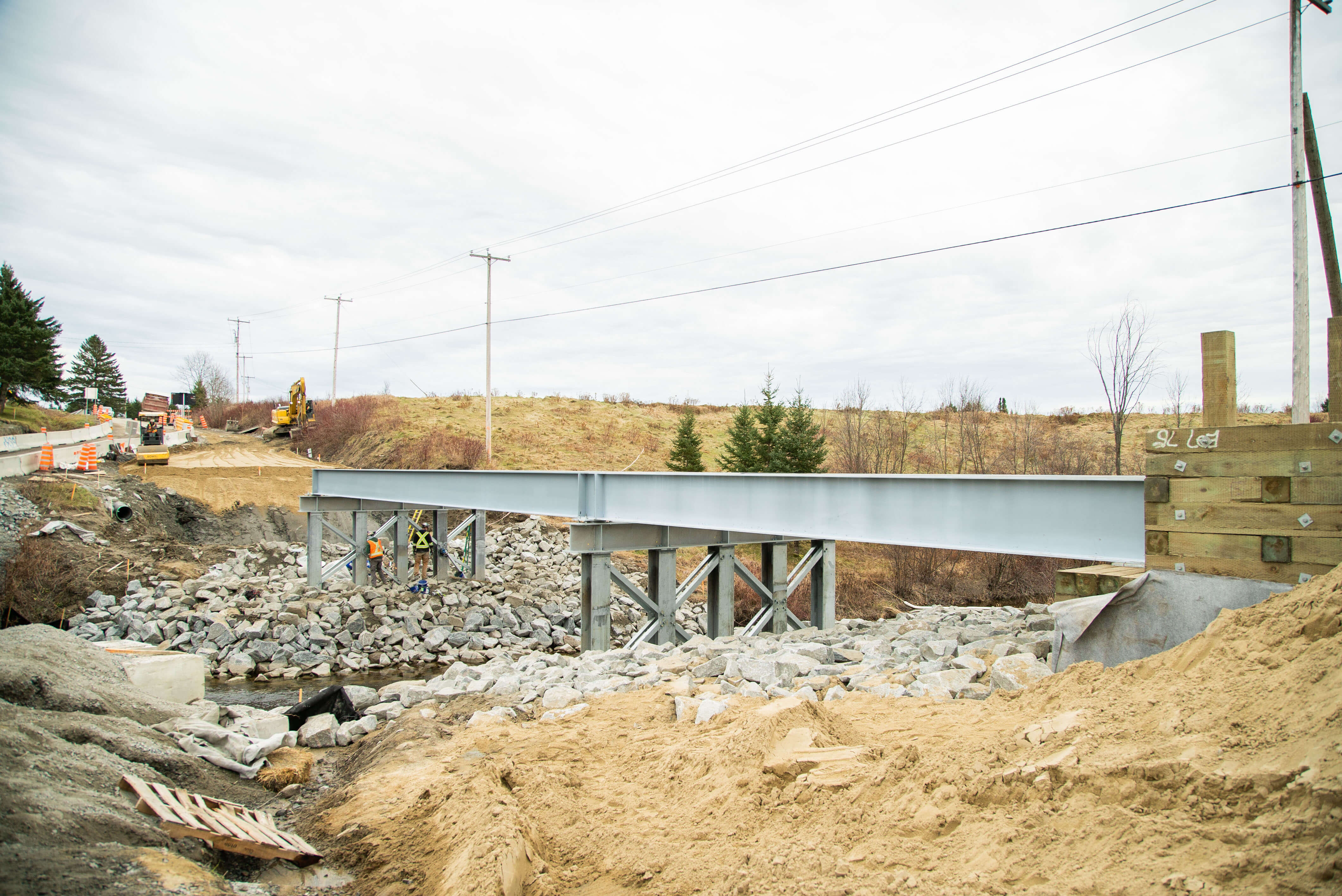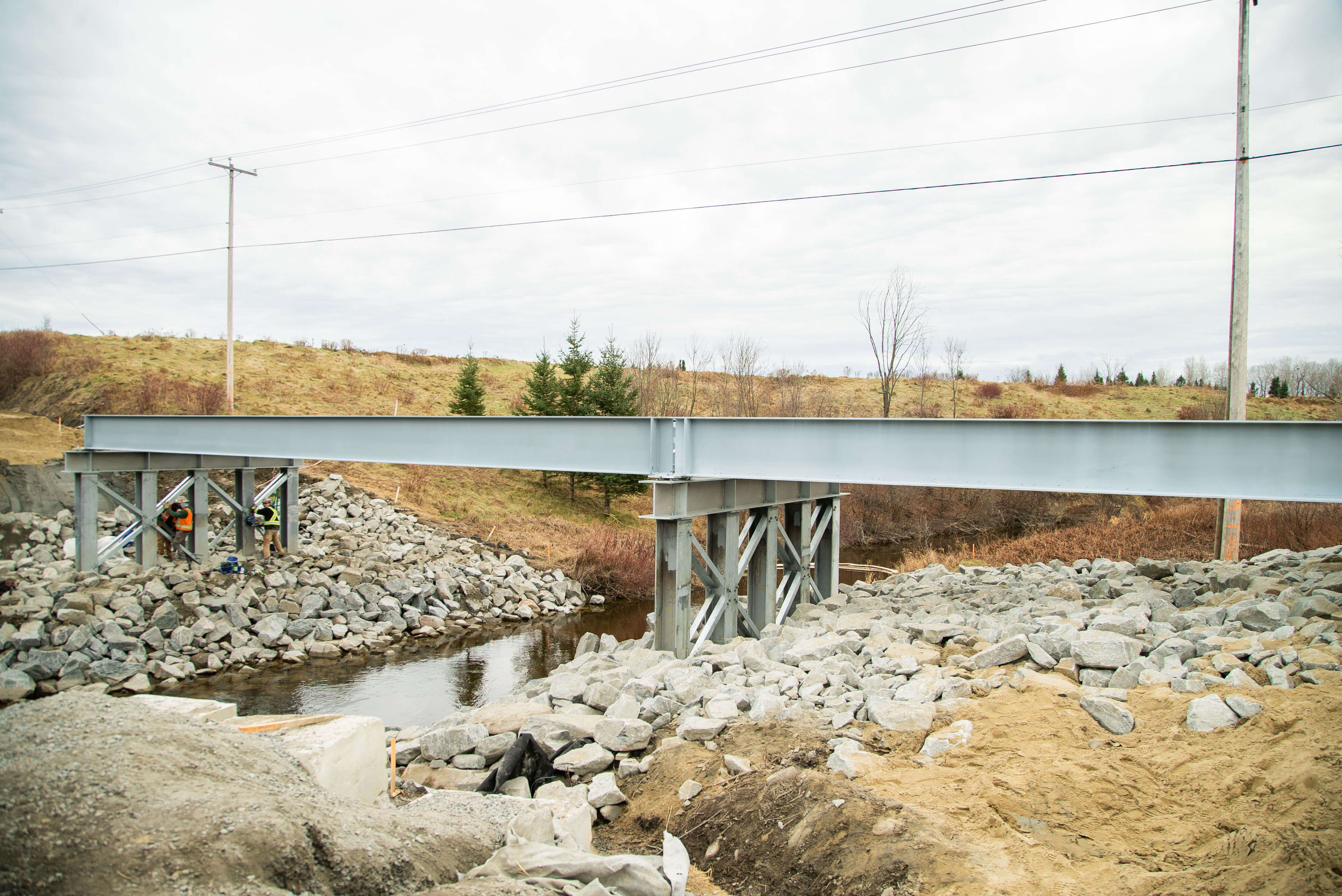 - Installation of concrete bridge structure, asphalt, guardrails and road refurbishment at entry and exit of bridge.