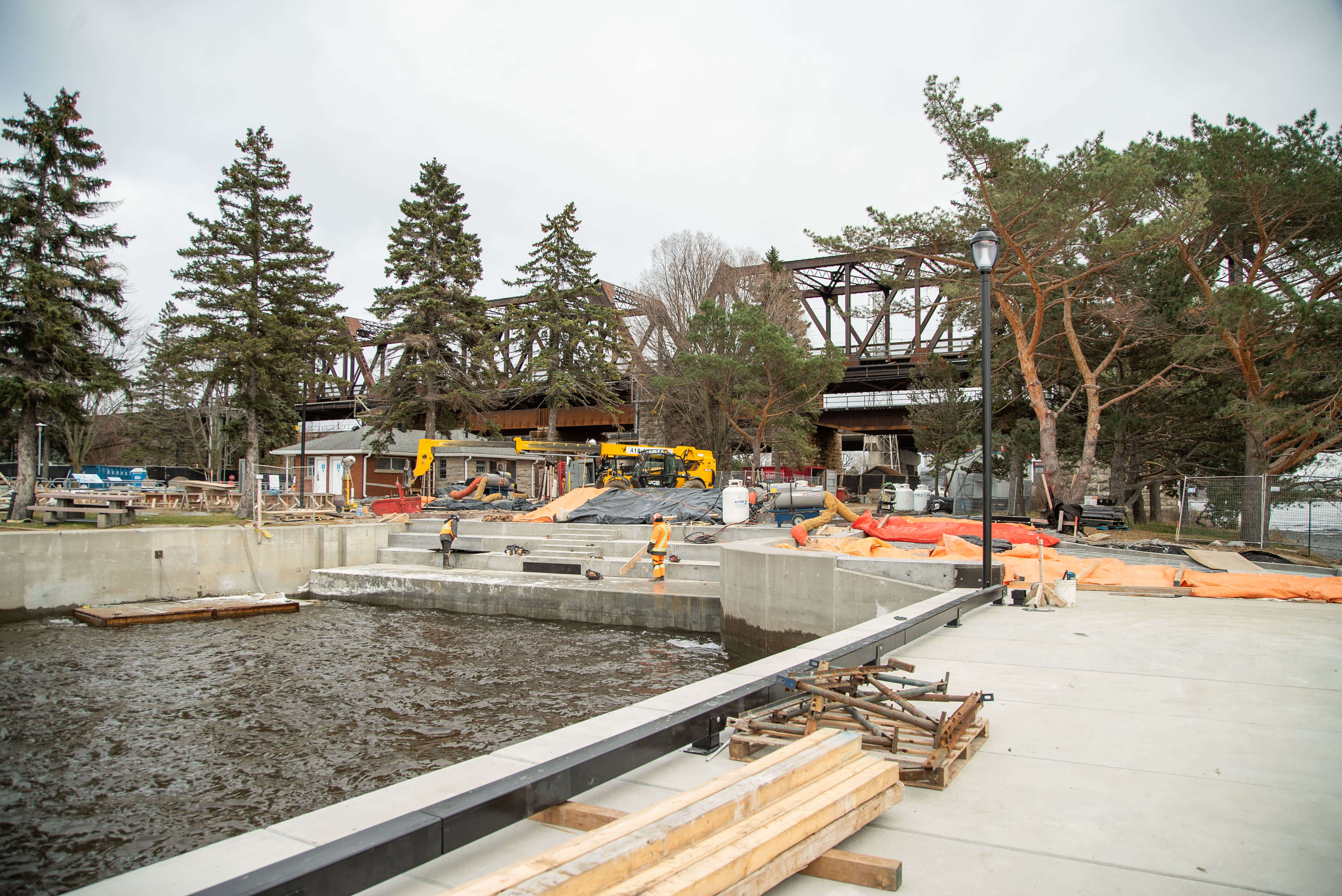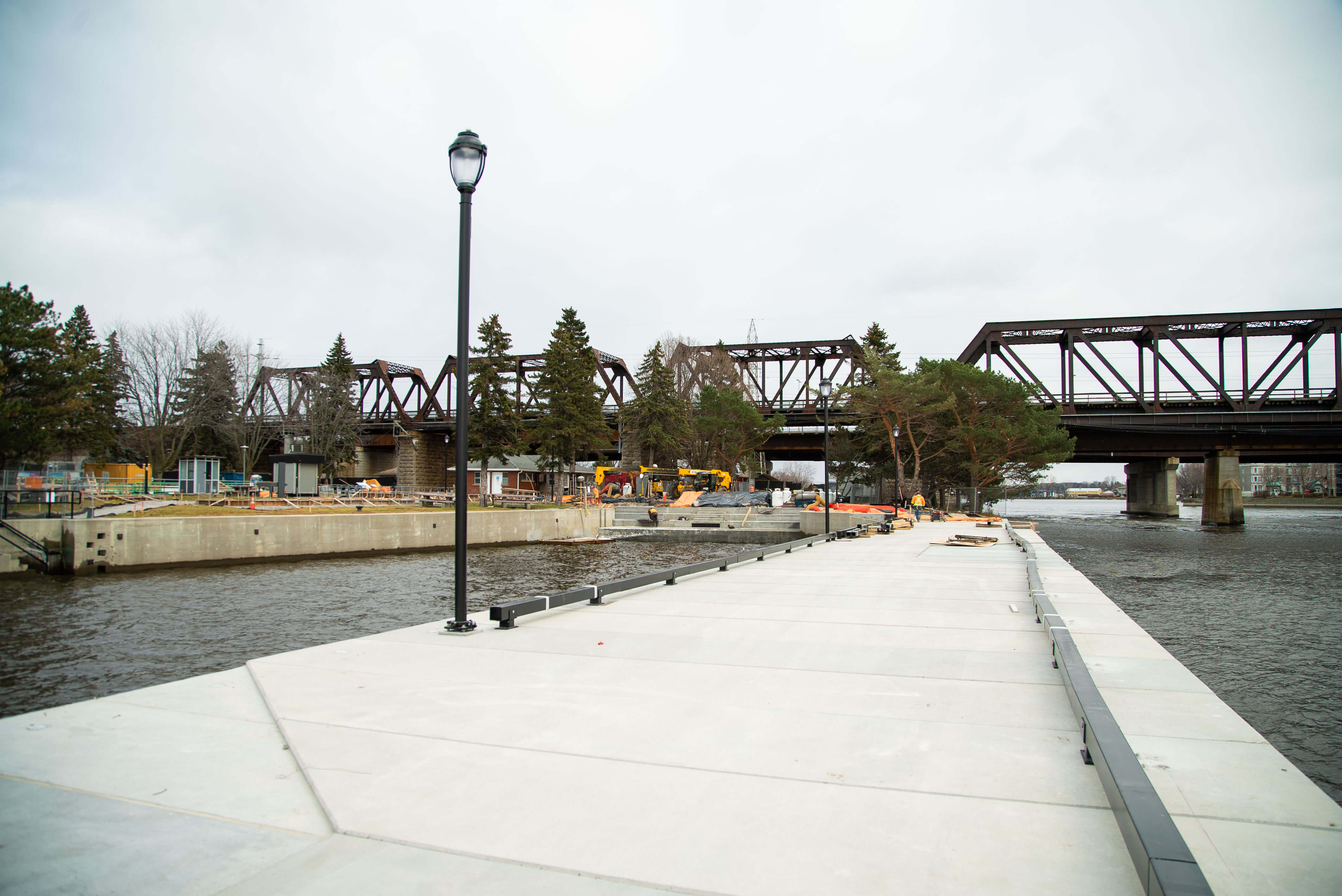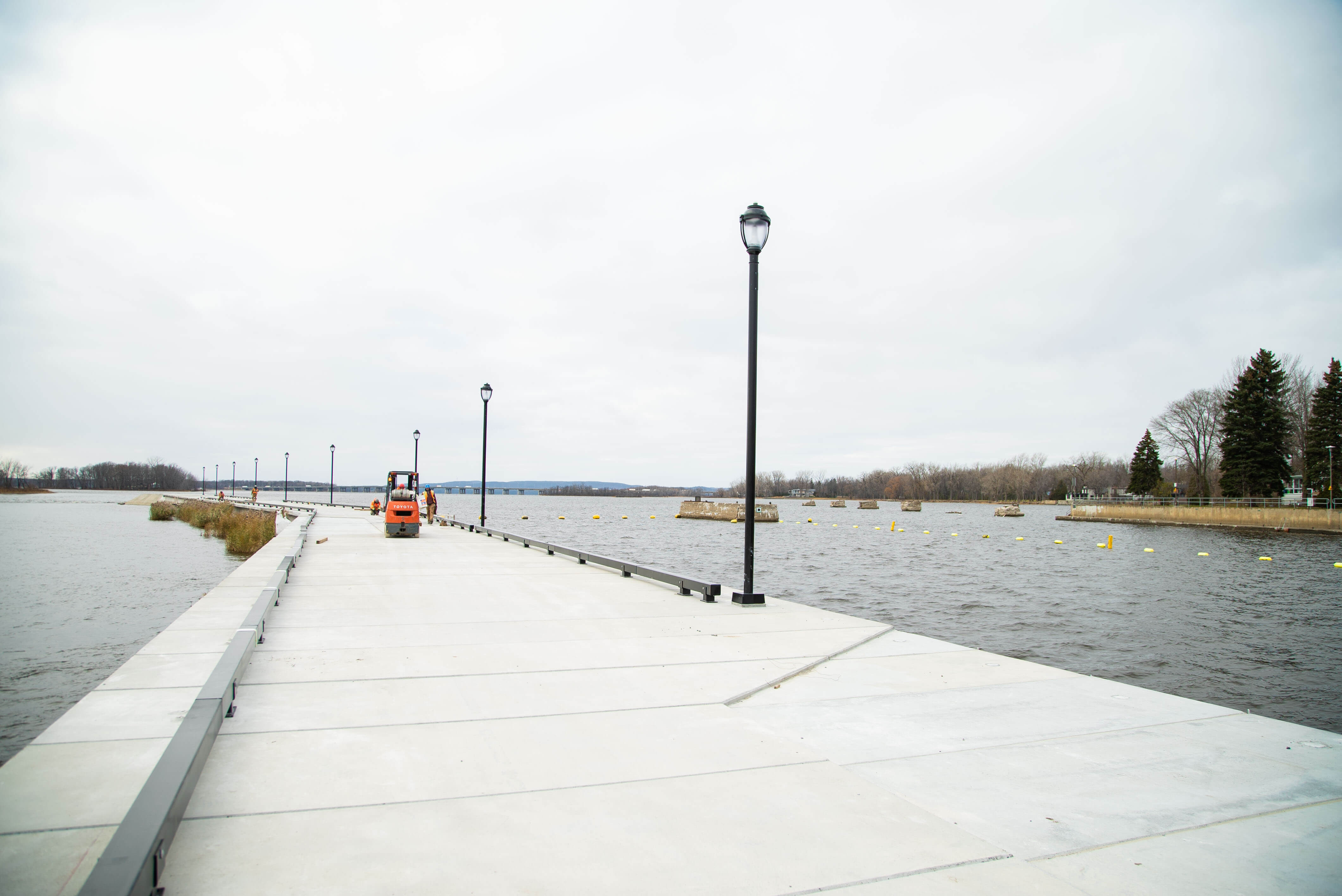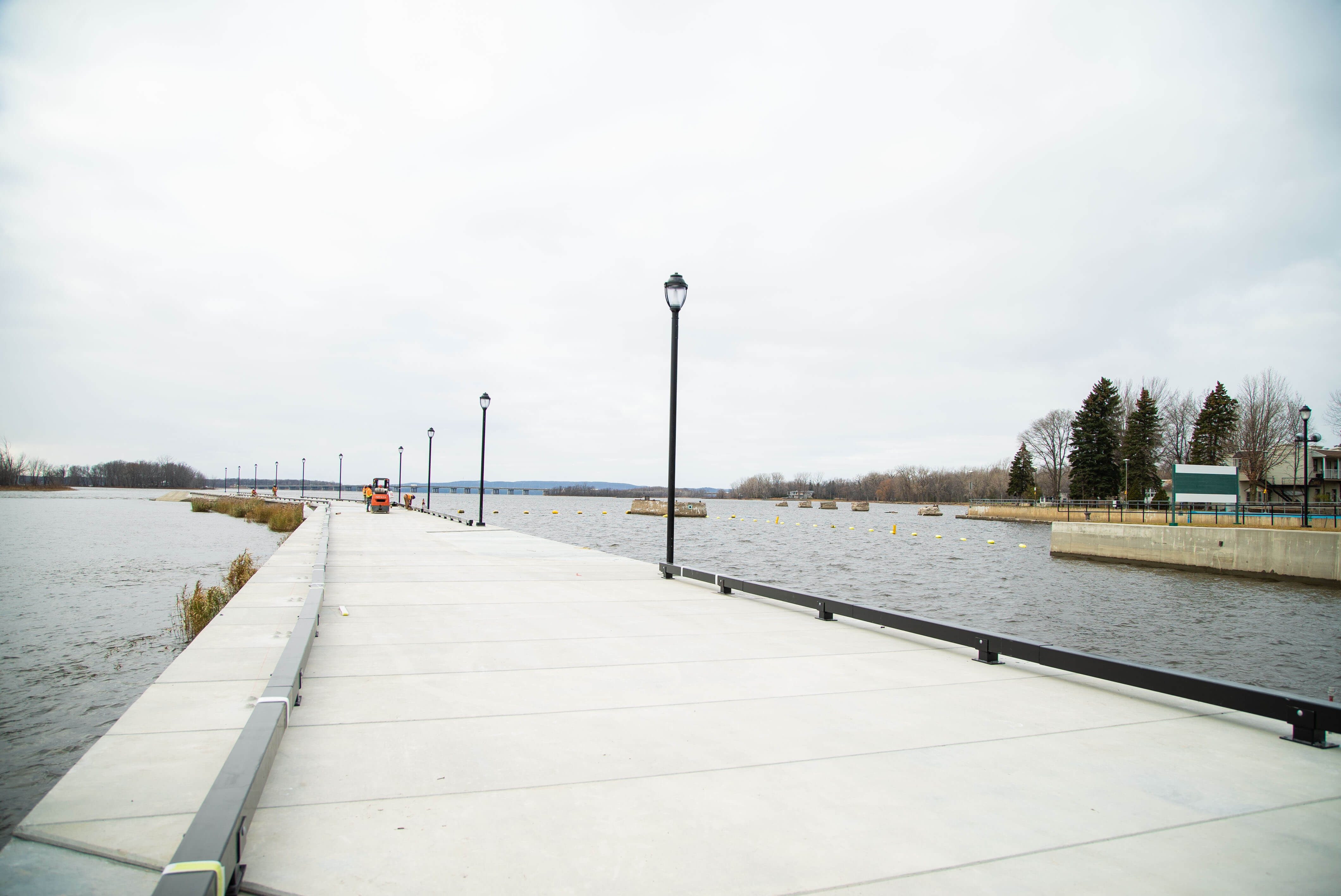 The project consisted of the rehabilitation of the upstream walls of the Sainte-Anne-de-Bellevue Canal, among other things: complete and partial demolitions and reconstructions of jetty walls upstream of the marina, the demolition and complete reconstruction of a concrete head and its wooden casing. The repairs consist of complete and partial demolitions of the walls of the old lock, the nautical markings of the central caisson and electrical and civil works to complete the work.