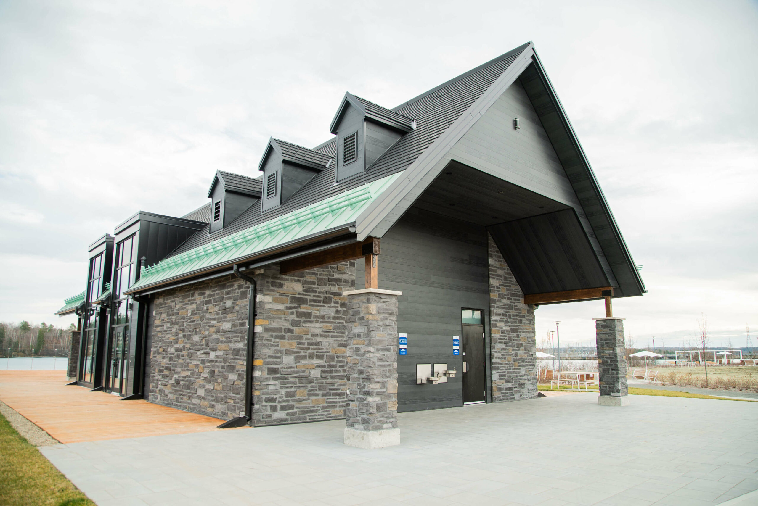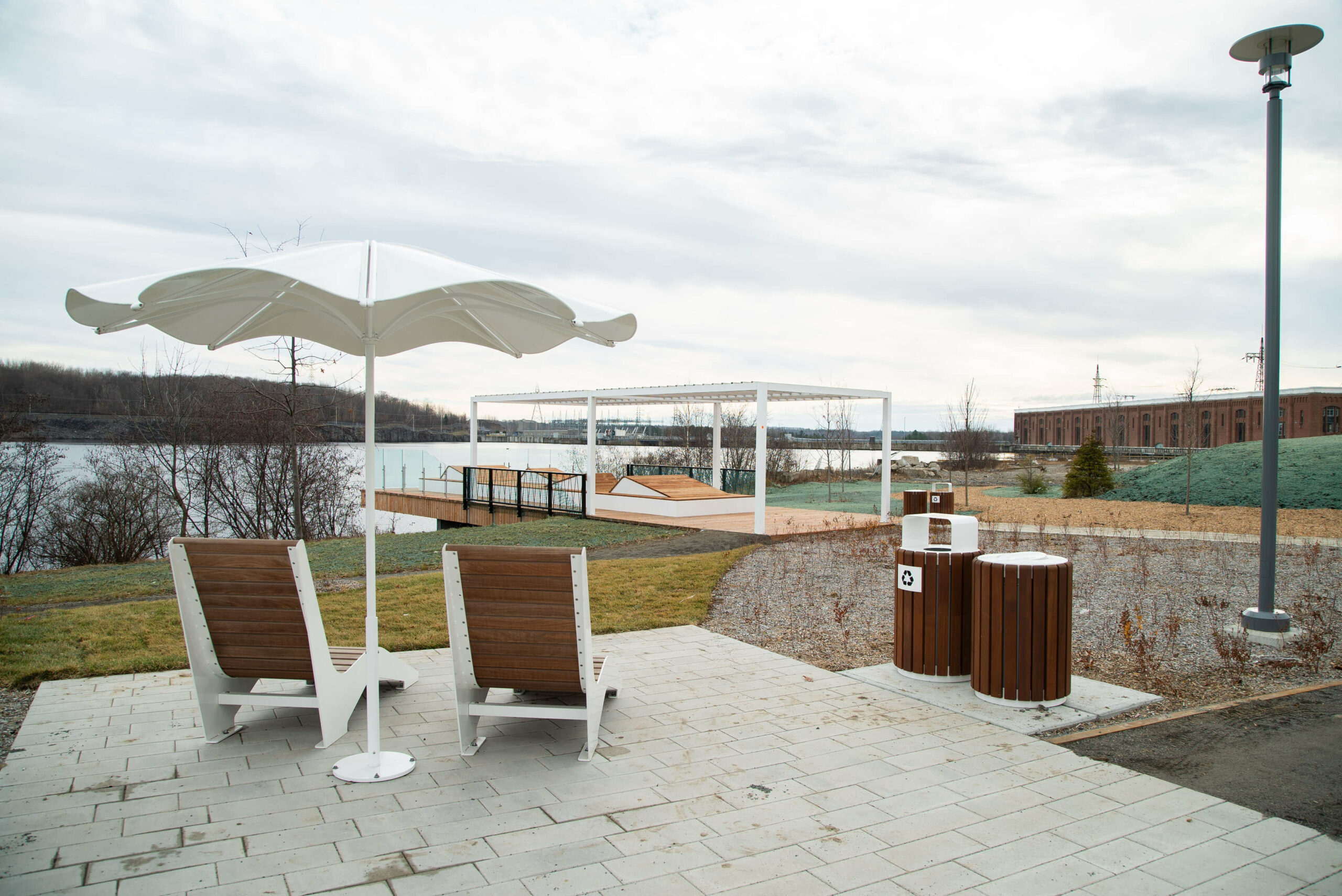 - Construction du bâtiment pour les usagers et les visiteurs de la marina et du parc riverain
