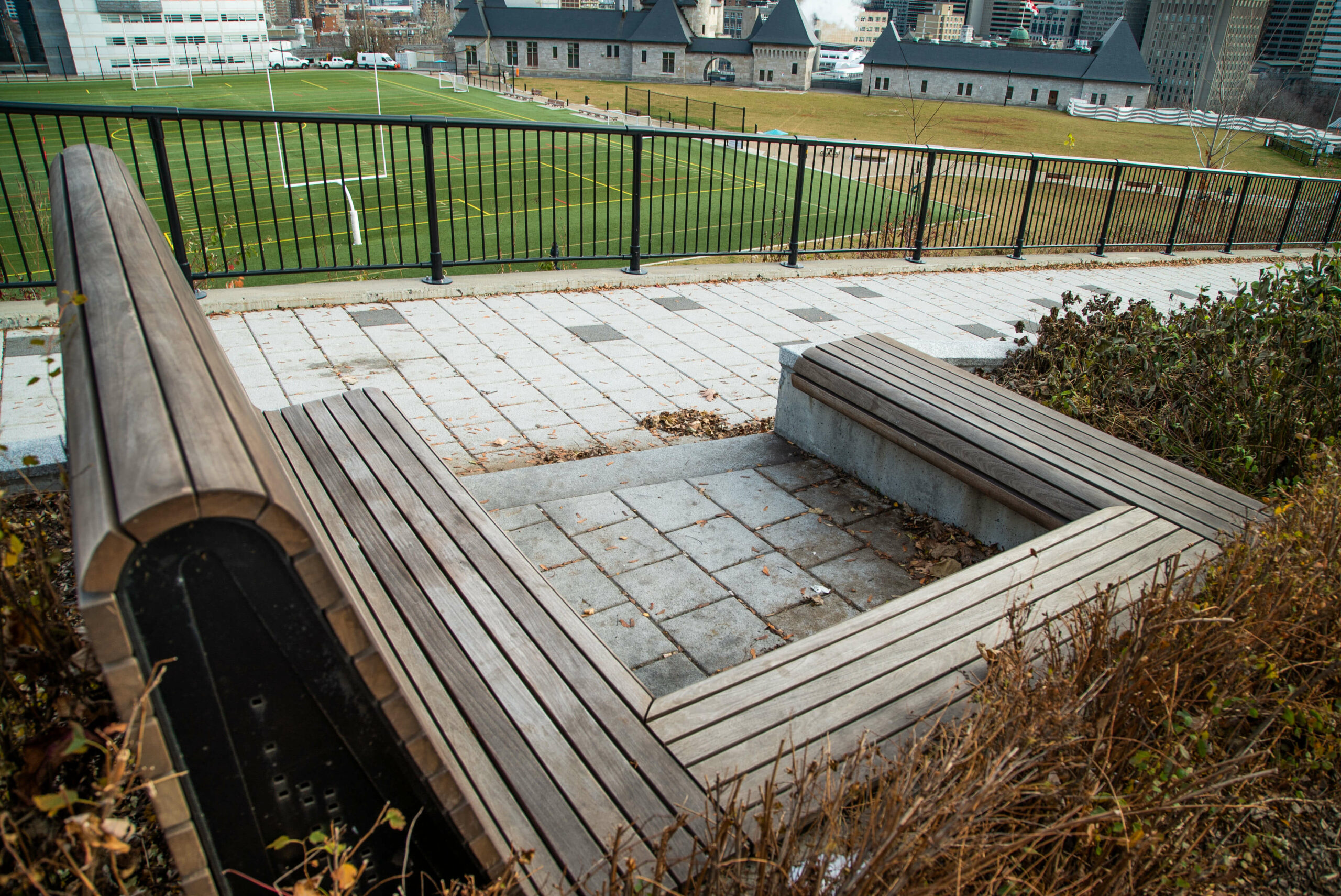 - Paysagement de type architectural et installation de mobilier urbain.