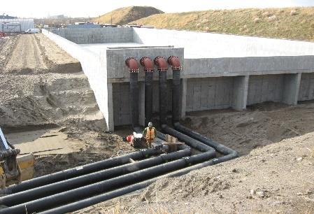 - Deux stations de pompage avec 4 pompes de 100 HP à plus de 6.5 mètres sous les grandes marées ;