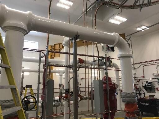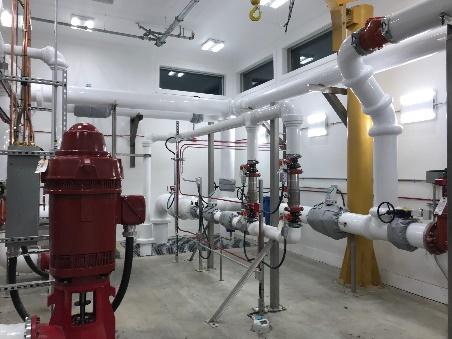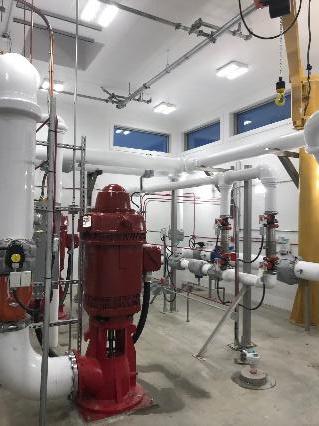 - Construction du réservoir et du bâtiment de la station d’appoint, y compris les composants mécaniques et électriques, contenant des pompes à incendie, un générateur diesel et des panneaux de contrôle électrique;